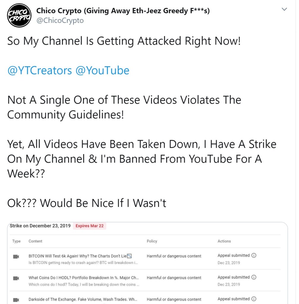It’s a complete crypto mayhem in fact and many are having their most popular videos taken down in the eve of Christmas. What a way to celebrate ey?