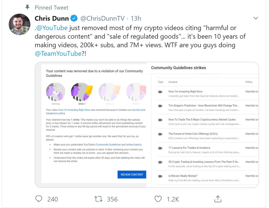 This Christmas many of the most avid YouTube content creators in the crypto space got an unexpected gift… a channel strike accompanied with the removal of hundreds, perhaps even thousands of their videos.
