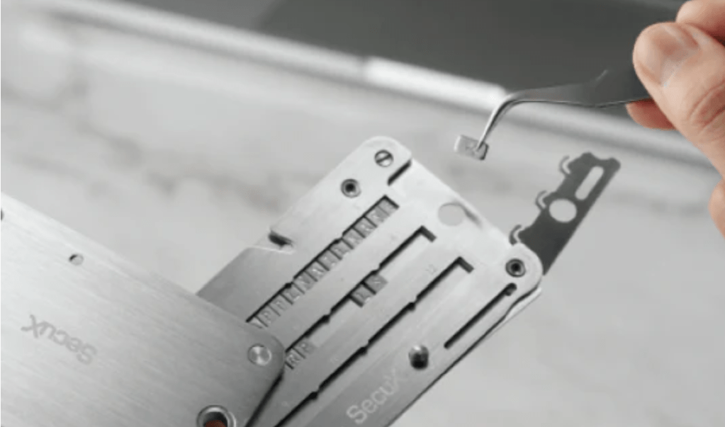 The sleek and compact design of the XSEED Pro makes it easy to store in safes or carry discreetly. You don’t have to engrave or punch letters onto the plate, you simply slide them in similar to Ellipal’s product.