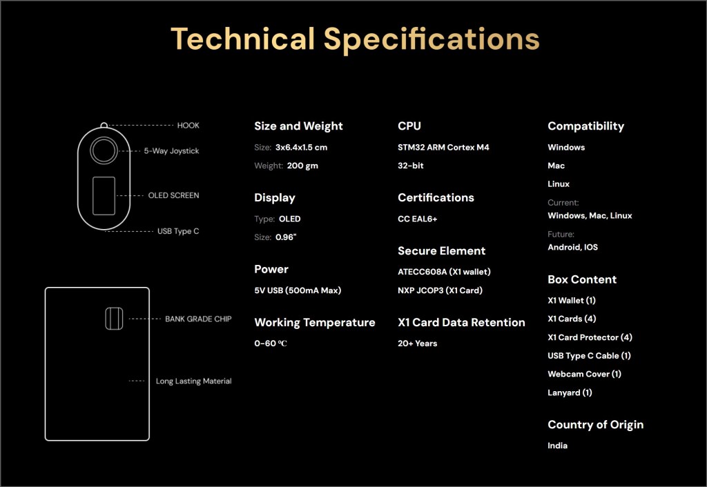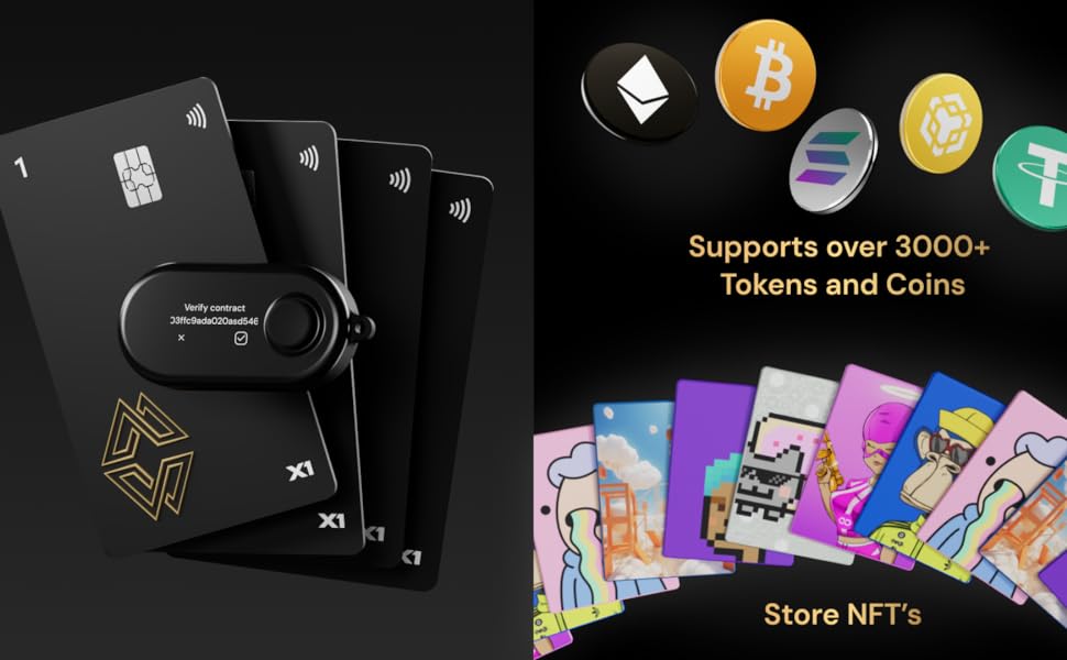 This X1 model consists of four smart cards, each the size of a standard credit card, which are NFC compatible and a vault (the device) with a screen and joystick. The wallet is designed to operate “without a seed phrase,” offering a unique method to protect cryptocurrencies and free from the vulnerabilities associated with seed phrases.