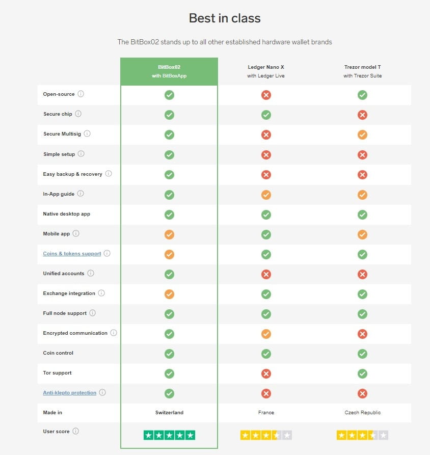 Proudly made in Switzerland, the BitBox02 is designed by security experts and offers essential security features to keep your assets safe. It takes elements from the two leading hardware wallet brands, Trezor and Ledger, aiming to offer the best of both worlds. It combines elements of open-source transparency and robust physical security to provide users with an exceptional cold storage solution for your crypto holdings.