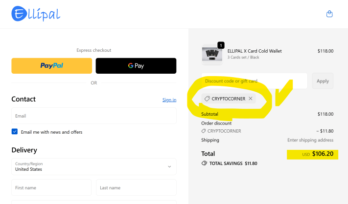Just a reminder, you can use my discount code: CRYPTOCORNER for any Ellipal product and you can go directly to their website or via this invite link. and just apply the code at checkout. Right now it’s an extra discount that makes the 3-cards bundle unbeatable value.