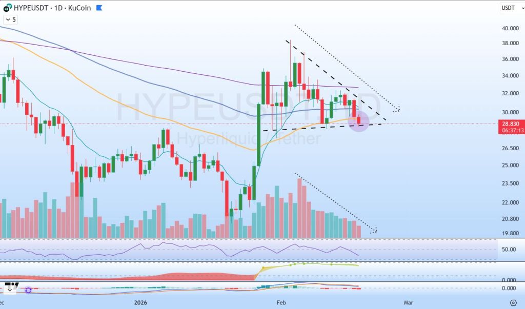 - If HYPE can hold above 28.00 USDT with rising volume, a rebound towards 30.50 – 31.50 USDT may unfold.