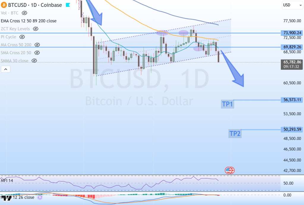 Caught between fear and greed, BTC just dropped again this morning, hitting $65k. It’s a move I charted just 4 days ago and without a miss, it’s already playing out like a textbook scenario.
