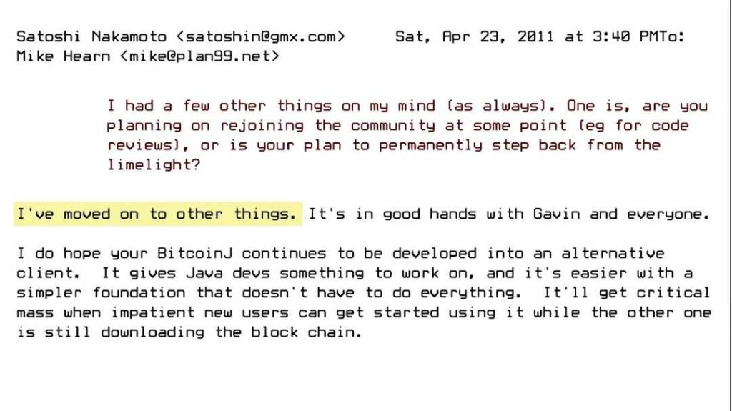 By April 2011, Satoshi’s absence is noticeable enough that Hearn reaches out to him privately, asking if he plans to return.